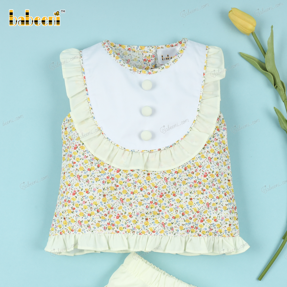 2 Piece Set In Yellow Tiny Floral For Girl - BB3192B
