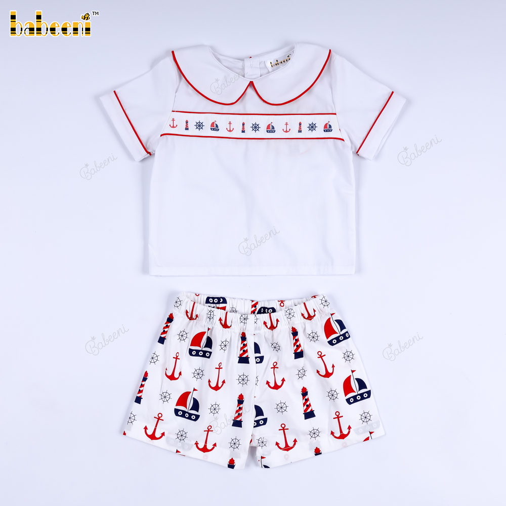 A lighthouse, mine, and boat-themed outfit for boys.- BB3573