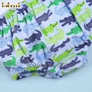 Feature: Adorable crocodile boy set, t-shirt with pocket and embroidered crocodile, printed shorts with pattern of crocodiles. cute peter pan collar.