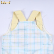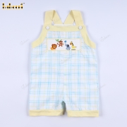 Features: Nice shortall for little boys with hand smocked lion, monkey, elephant & giraffe on the chest, covered buttons, yellow pipping. Perfect for Spring summer. Best gifts for birthday or special days.