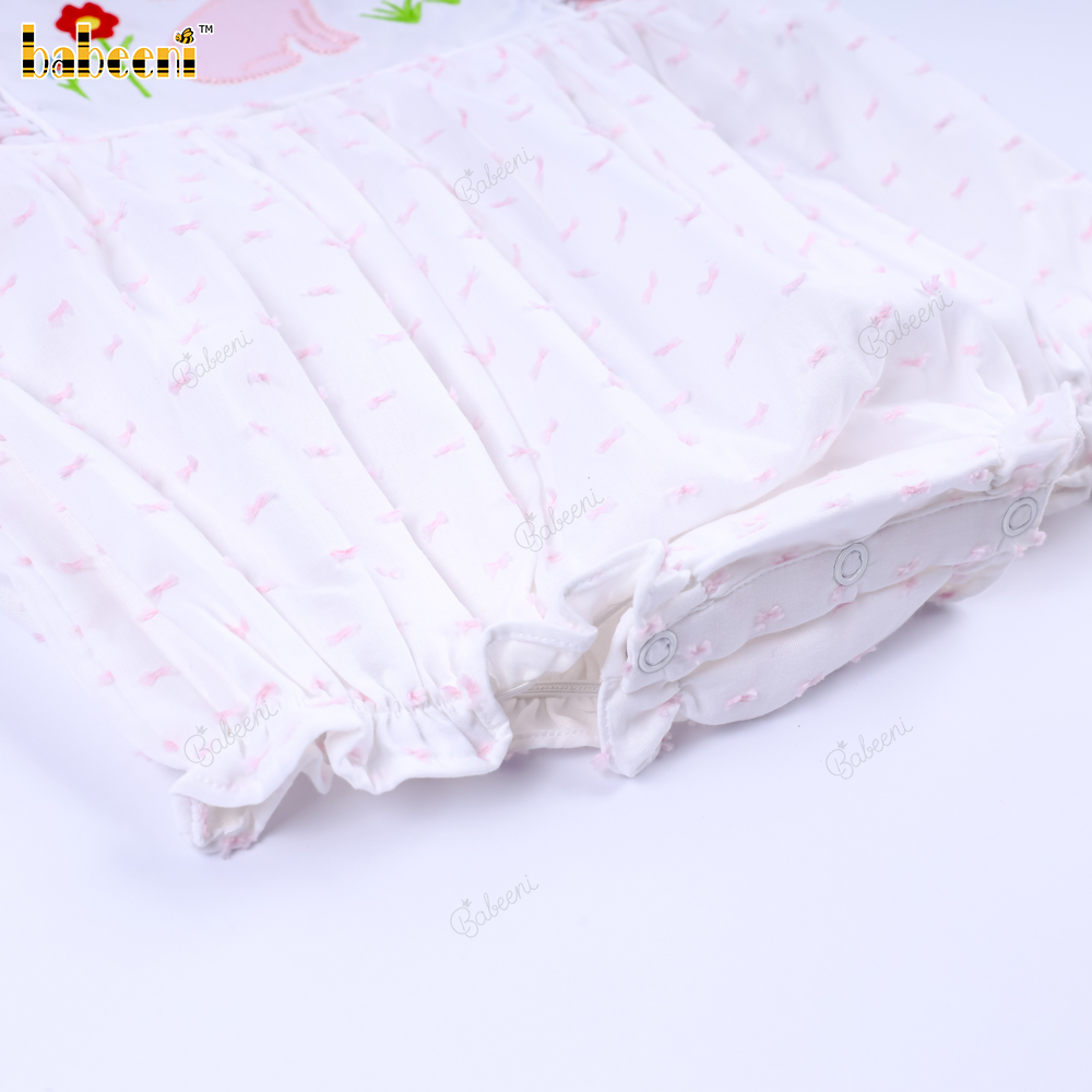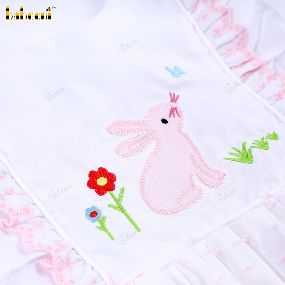 Applique Bubble Pink Bunny Flower For Girl - BB3292B