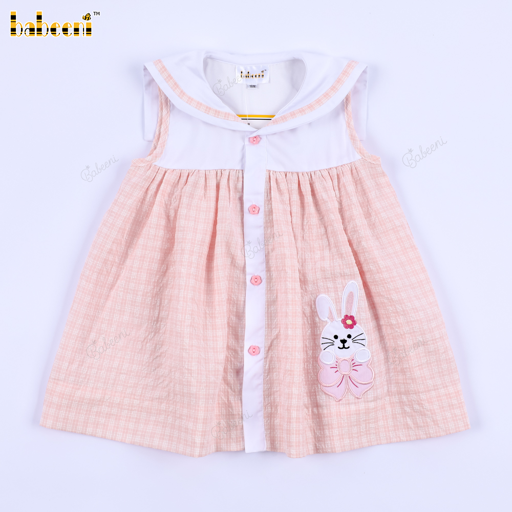 Applique Dress With Bunny And Flower Button For Girl - BB3253A