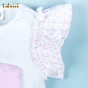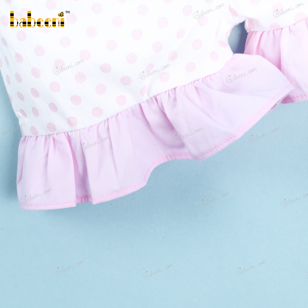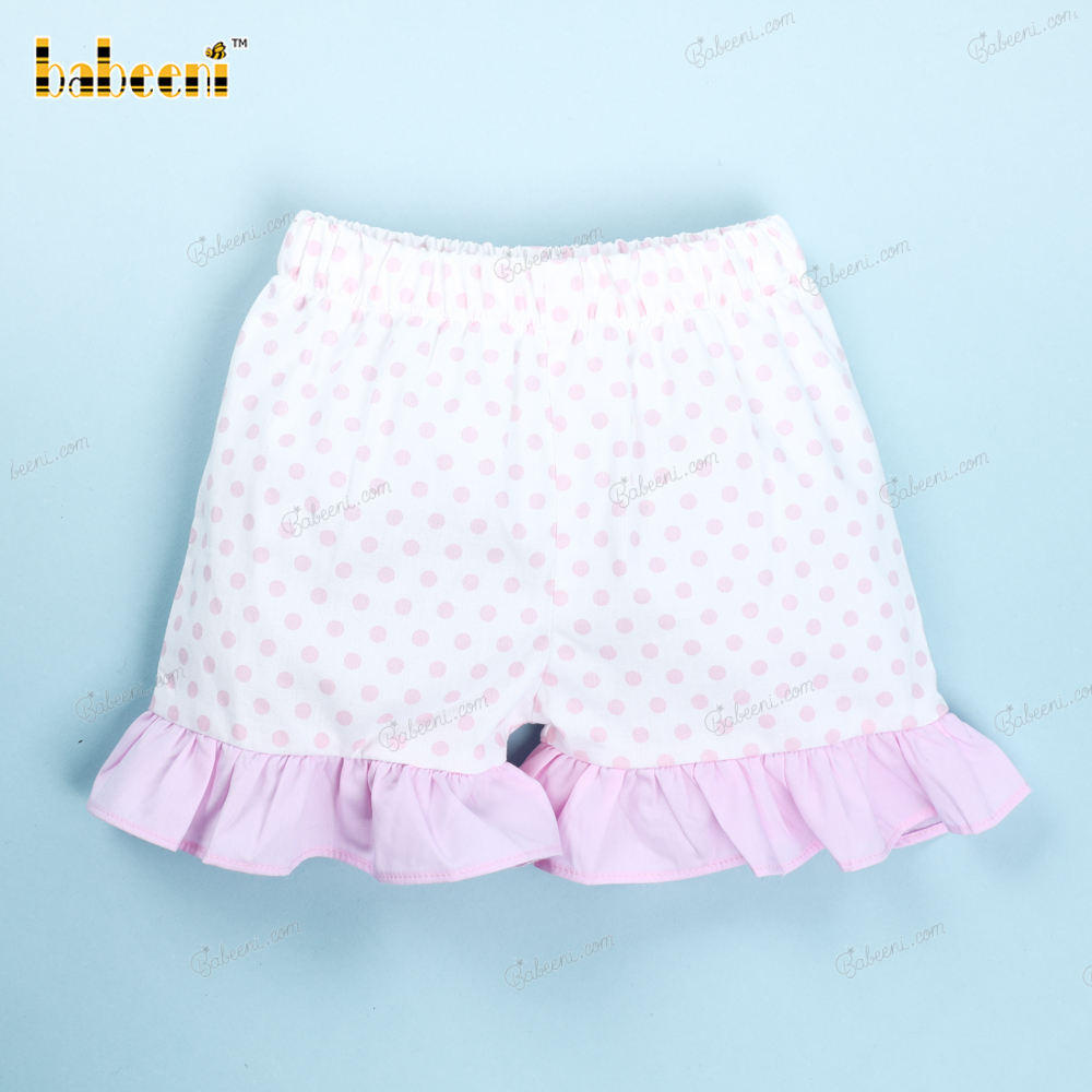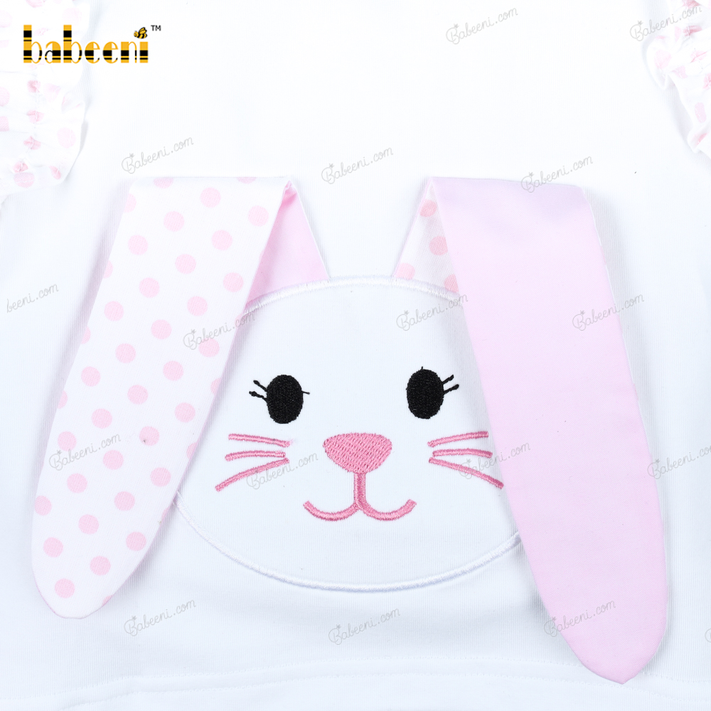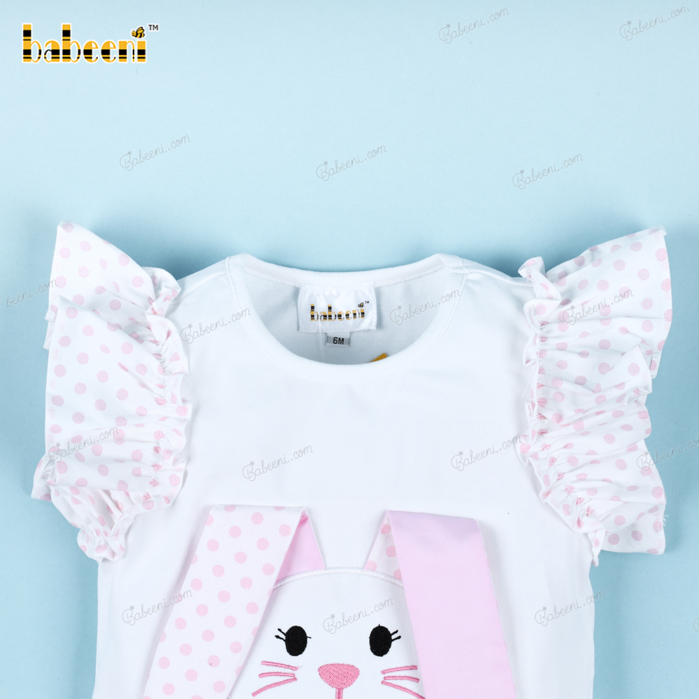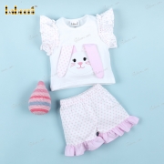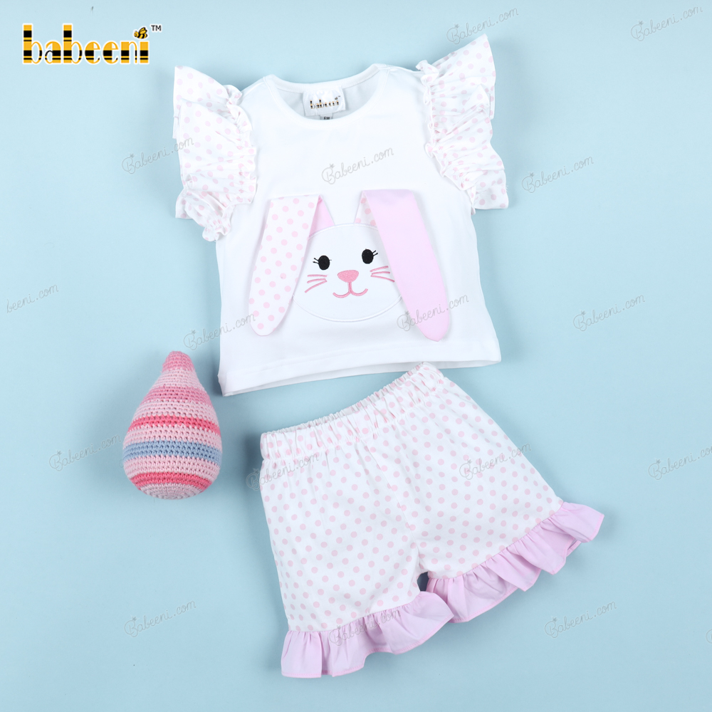Feature: A two-piece short set in true Easter spirit with a pink Bunny on a white top and white pink dot bottom for girl