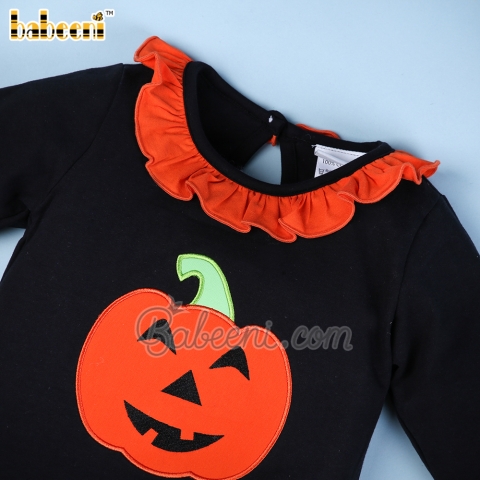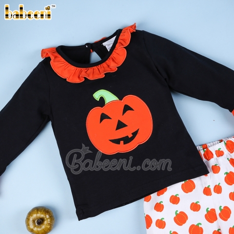 Appliqued pumpkin Halloween and pumkin printed girl set - BB812A