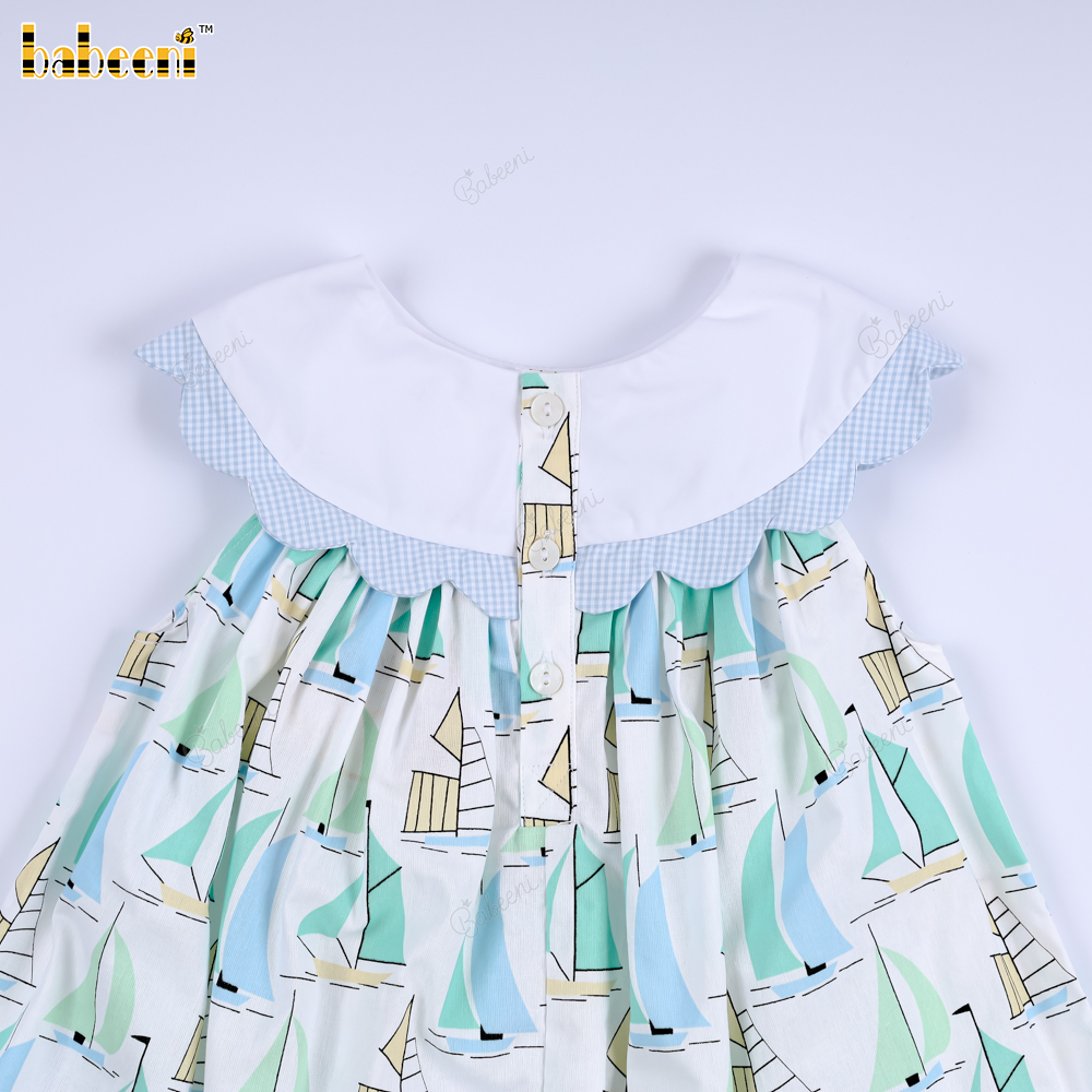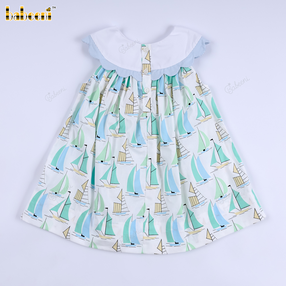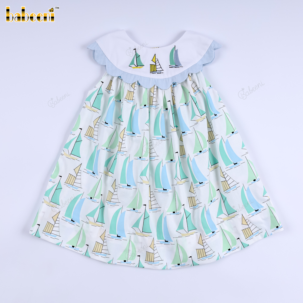Baby Dress with Embroidered Sailboat Pattern- BB3569