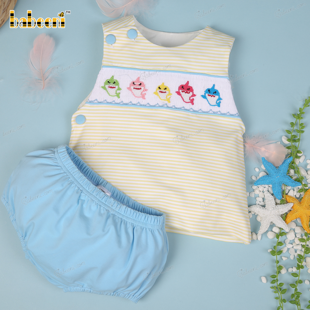 Baby Shark Hand Smocked Set Clothing For Boy – BB3160B