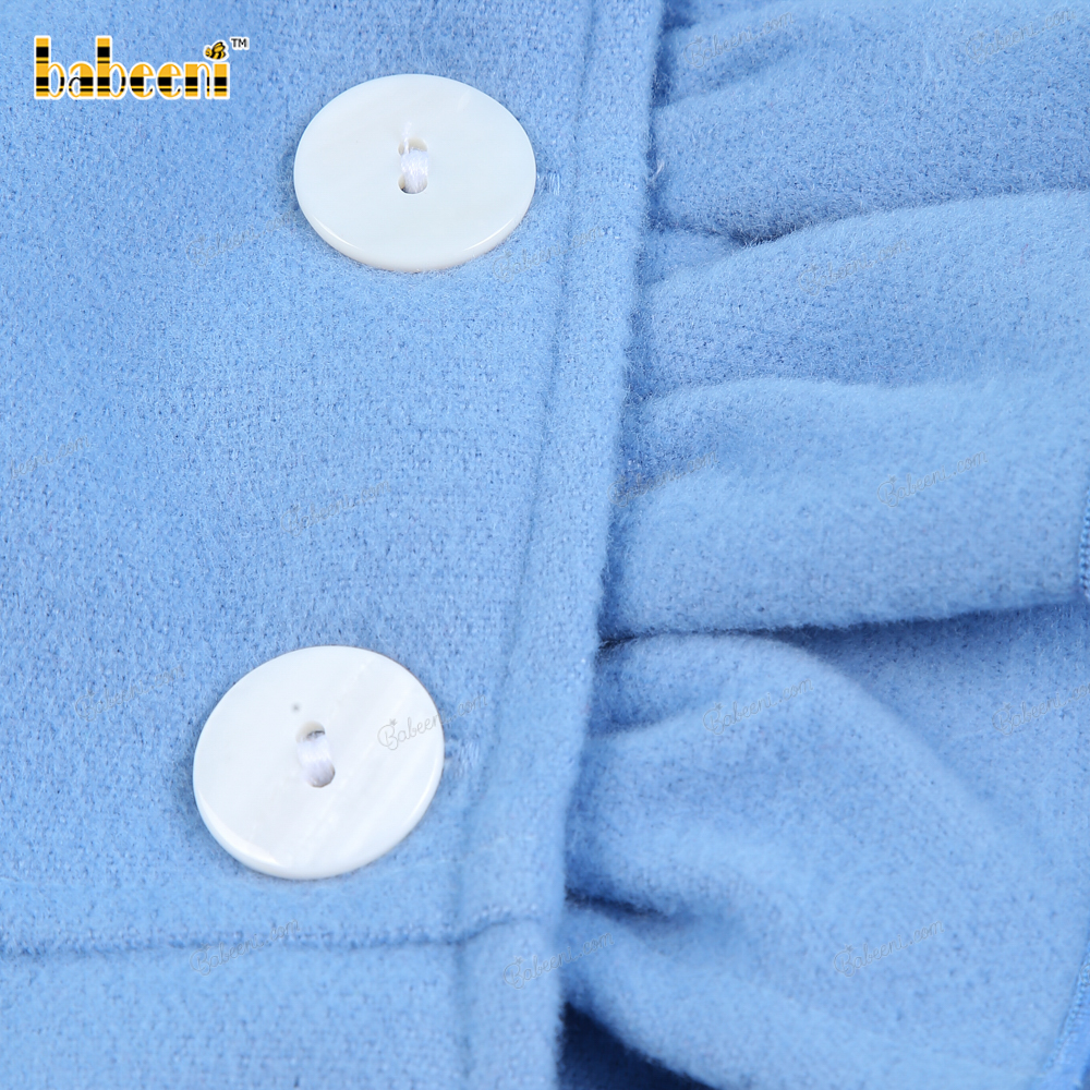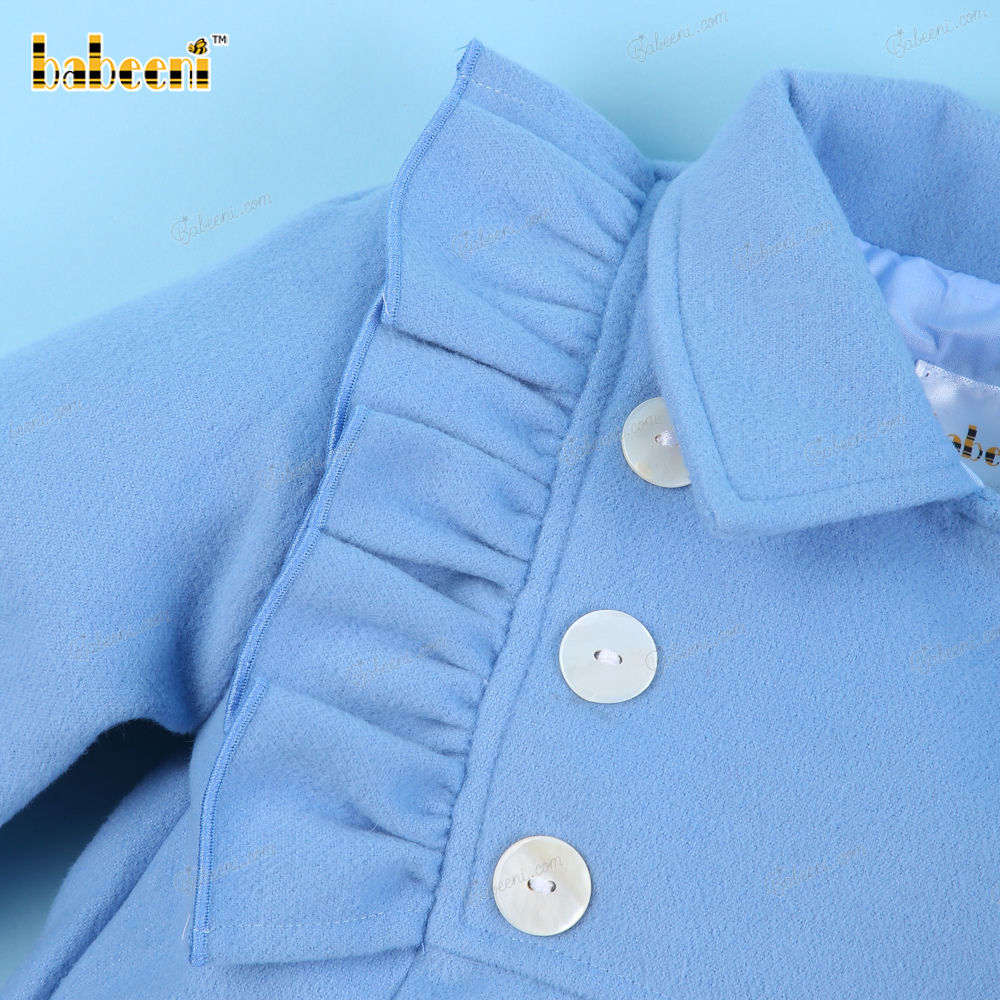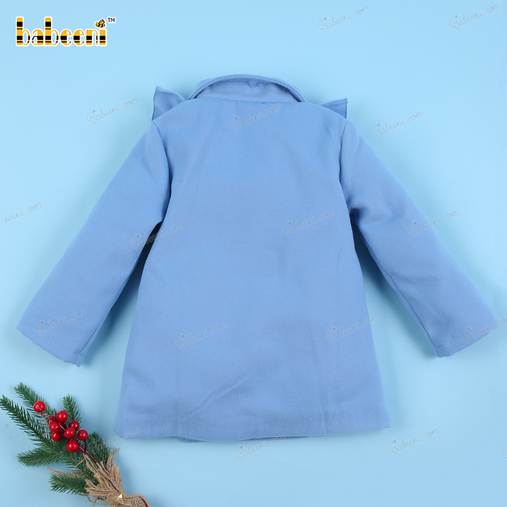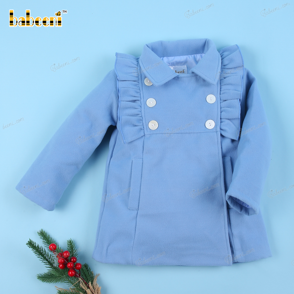 Features: Blue overcoat for girl, brings warmness in cold winter, ruffles in both sides, matching layer inside. Perfect for Winter. Best gifts for birthday or special days.