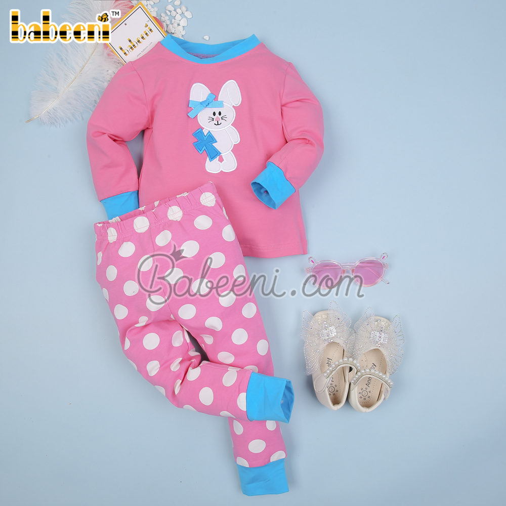 Bunny with cross appliqued kid set for Easter - BB1035B