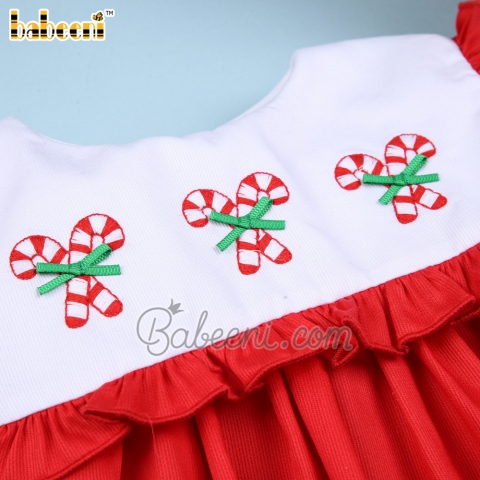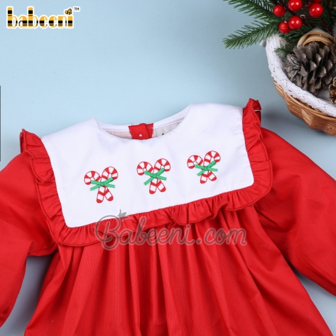 Candy cane hand embroidery baby dress - BB3391A