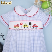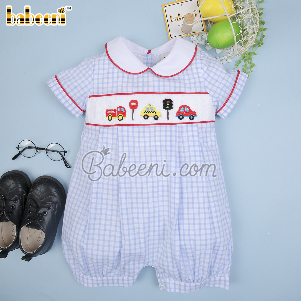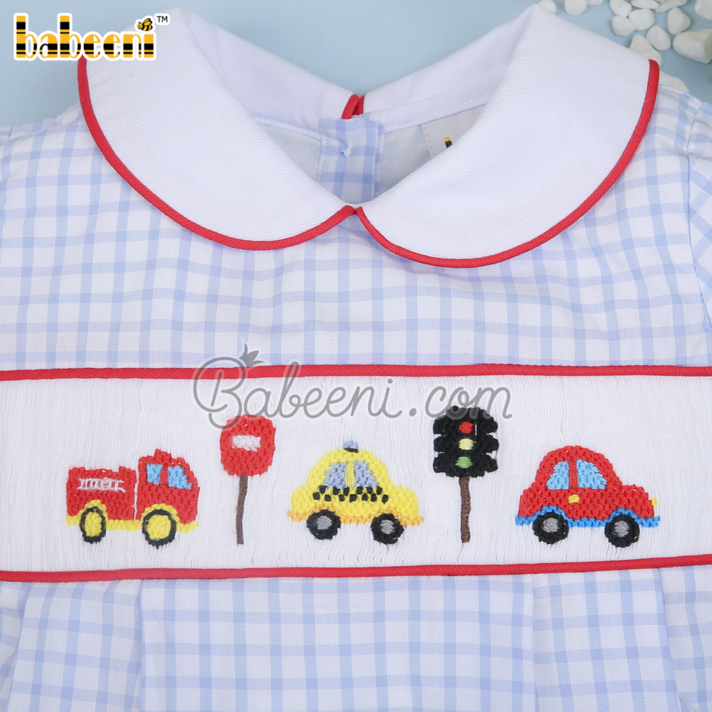Features: Nice bubble for little boys with hand smocked cars & traffic light on the chest, red piping, short sleeves. Perfect for Spring summer. Best gifts for birthday or special days.