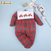 Features: Nice long bubble for little boys with hand embroidery of car carrying Christmas tree on the collar, long sleeves . Perfect for Christmas. Best gifts for birthday or special days.