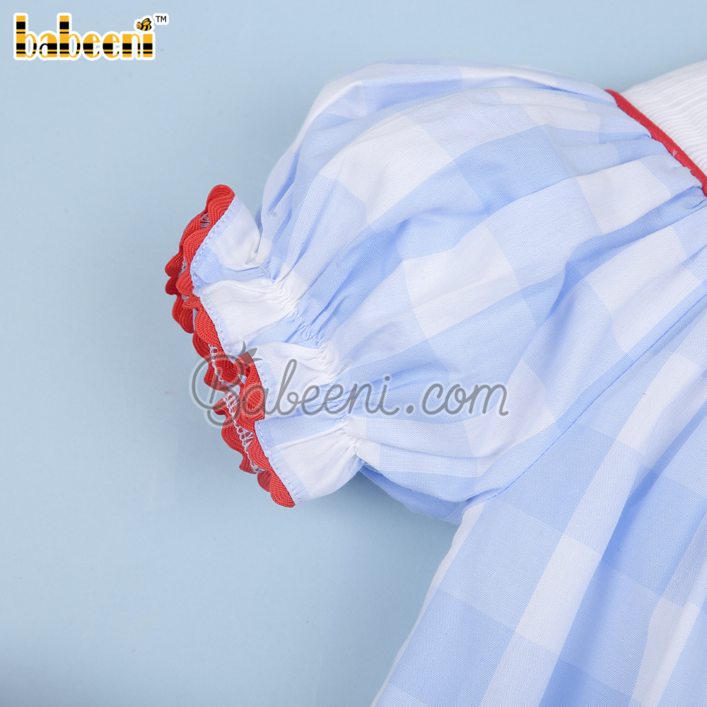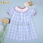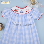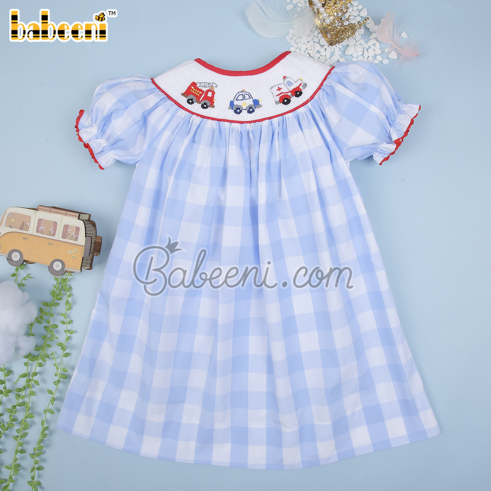 Features: Lovely dress for little girls with hand smocked fire truck, police car & ambulance on the neck, short sleeves with red zigzag. Perfect for Spring summer. Best gifts for birthday or special days.
