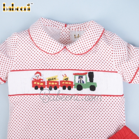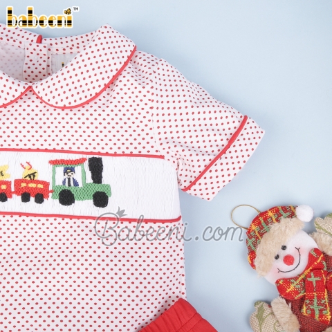Christmas Train smocked boy set clothing – BB2852C