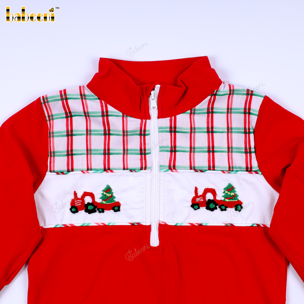 Christmas tree car carrying boy pullover - BB3120