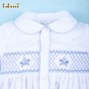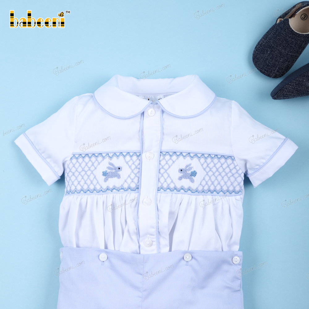 Features: Nice clothing set for little boys with geometric hand smocked on the chest, buttons at back, short sleeves. Best gifts for birthday or special days.