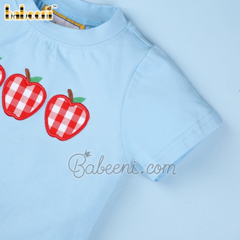 Feature:T-shirt for baby boy with cute apples appliqued patterns. This is a must-have item for the summer wardrobe of every boy.