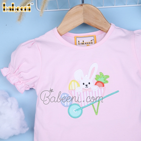 Cute appliqued bunny light pink girl T-shirt - BB1879A