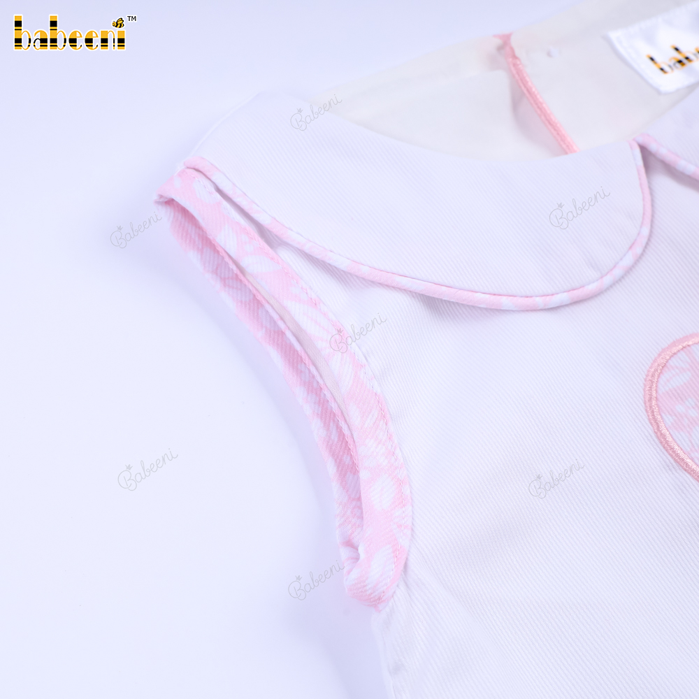 Fabric: Pink with white floral pique printing 4.0 + White pique plain