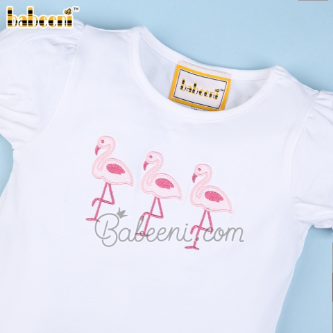 Cute embroidered flamingo T-shirt girl - BB1869A