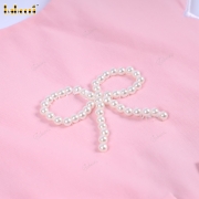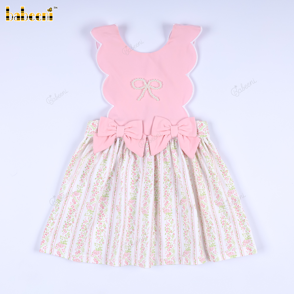 Feature: A lovely dress for babies with pearl embroidery and a white border around the hem, adorned with two bows on either side, making it very pretty and perfect. The best gift for birthdays or special occasions.