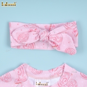 Fancy Pink Swimwear with bow tie and sweet candy pattern For Girl - BB3432A