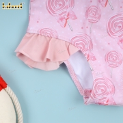 Features: Fancy Pink swimwear for little girls with sweet candy pattern printed by digital printed 4.0 technology. Perfect for Spring summer. Best gifts for birthdays or special days.