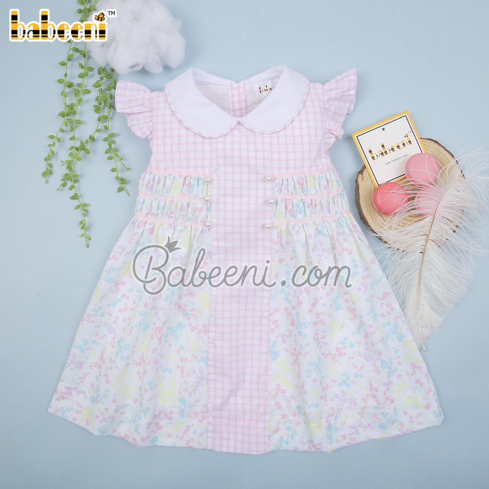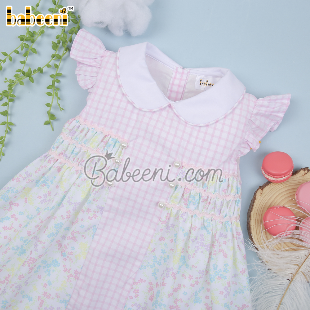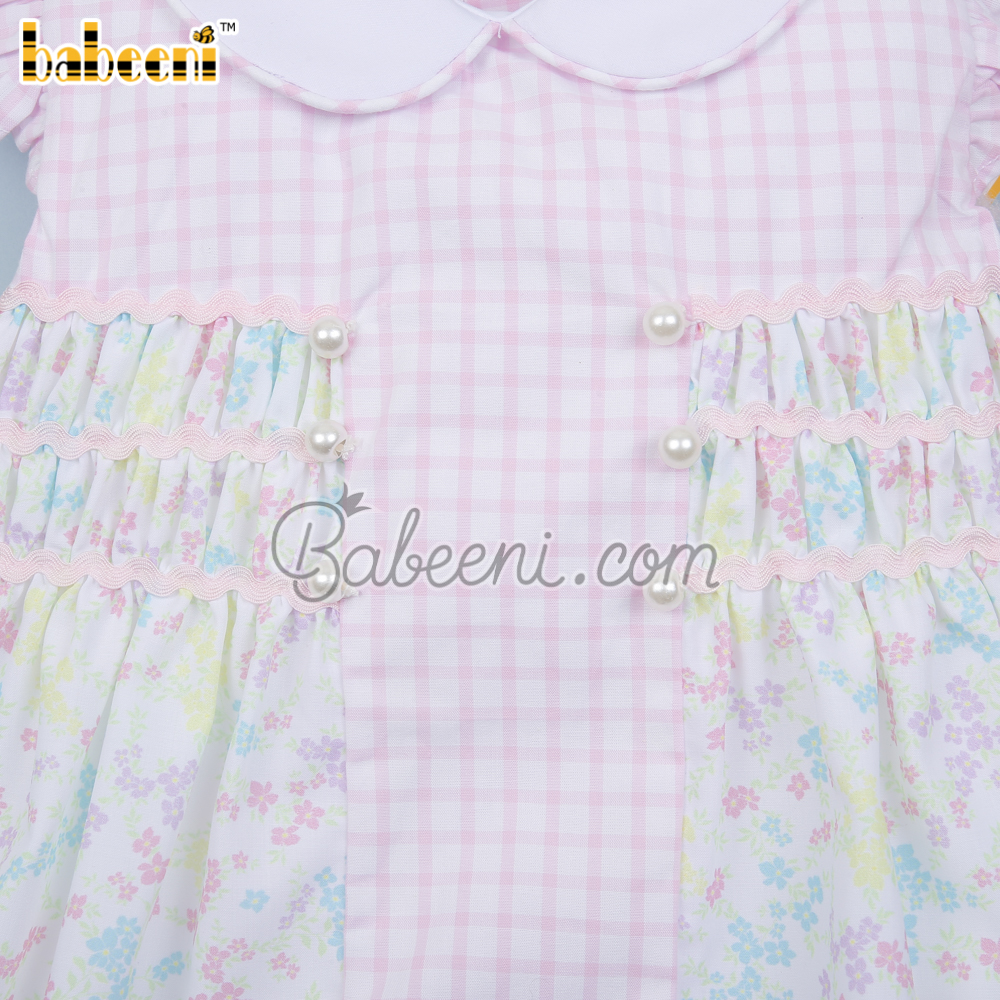Flower printed baby pink window pane dress – BB3044A