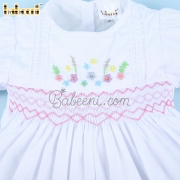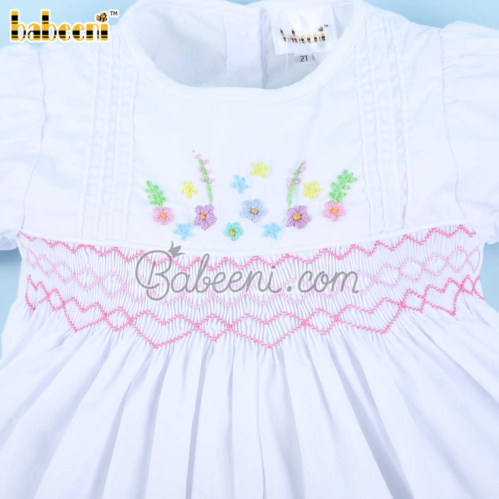 Feature: Fancy girl dress with colorful floral embroidery with geometric smocking on the chest, elastic sleeves. Perfect for party or special days.  Best gifts for birthday or special days.