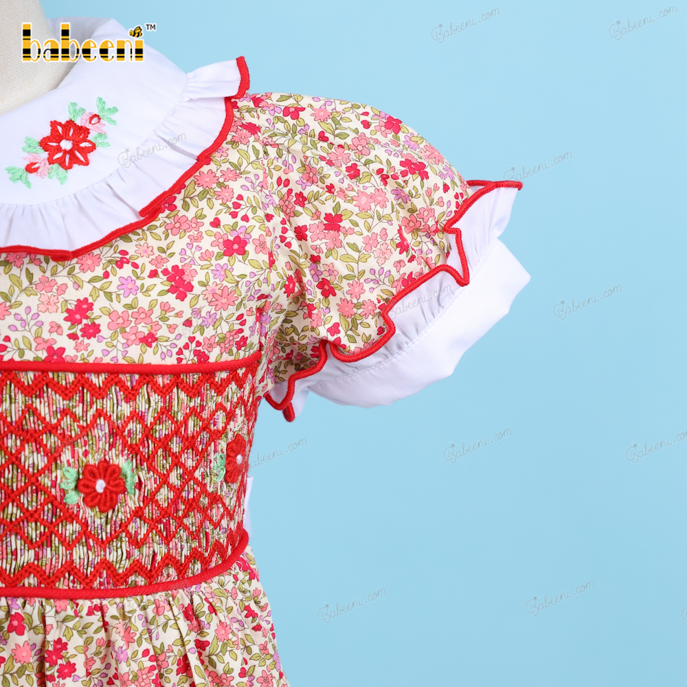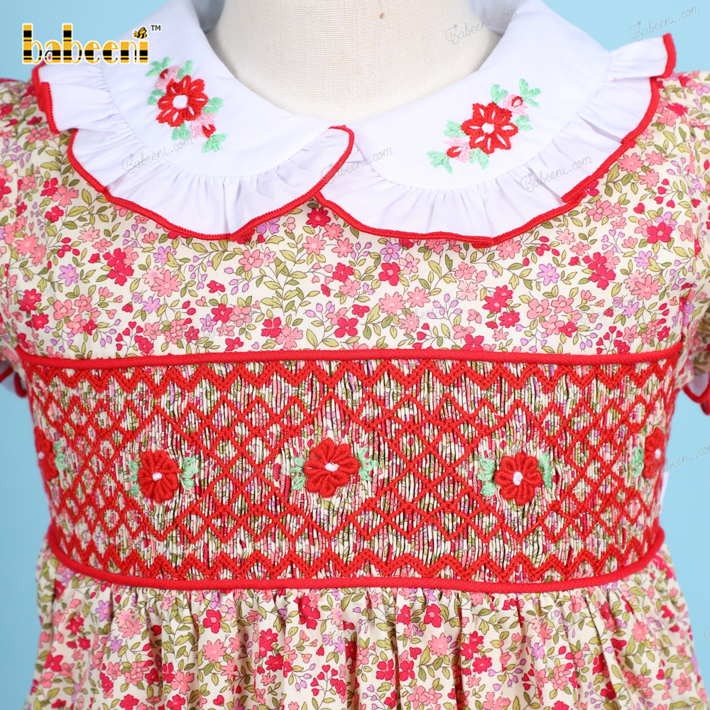 Features: A true spring vitality dress! Finished in a red floral pattern with two red flowers being hand embroidered on the neck. This is a nice gift for your baby girl this spring and summer.
