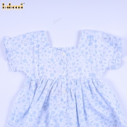 Geometric Smocked Dress Blue Flower On White For Girl - BB3286A
