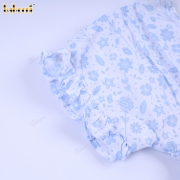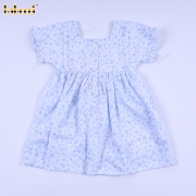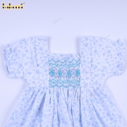Geometric Smocked Dress Blue Flower On White For Girl - BB3286