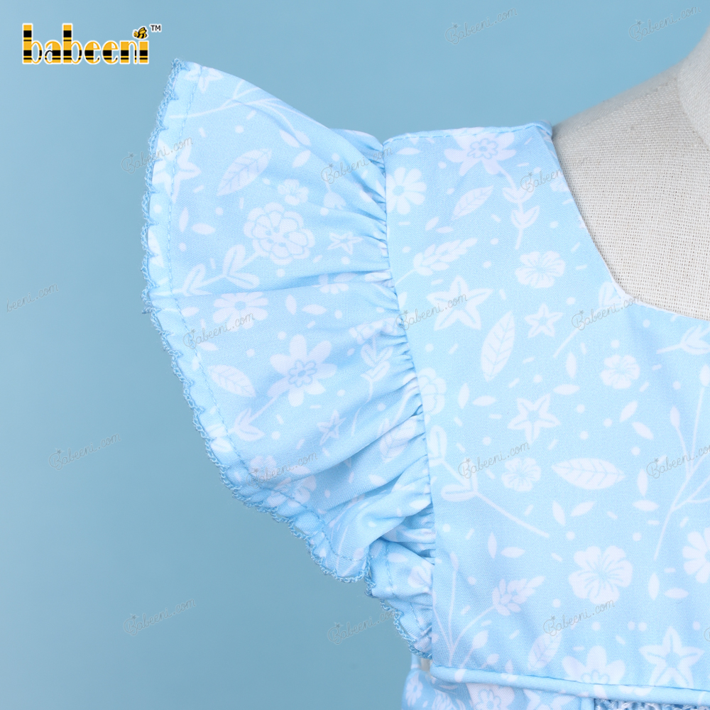 Geometric Smocked Dress In Blue With White Floral For Girl - BB3199A