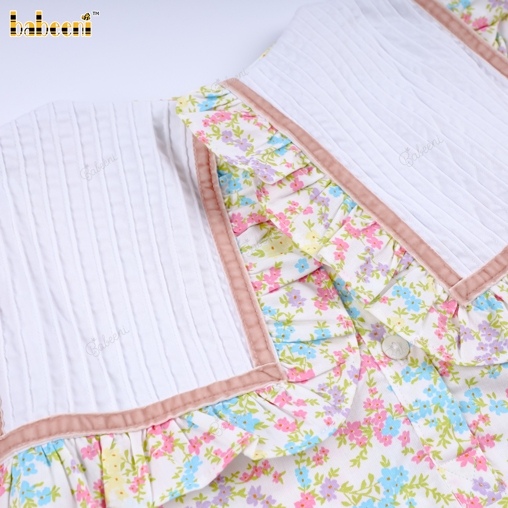 Material: Baby blue, pink, and lavender floral fabric + White plain