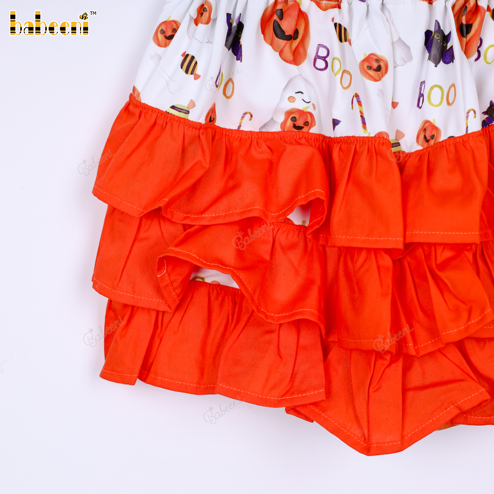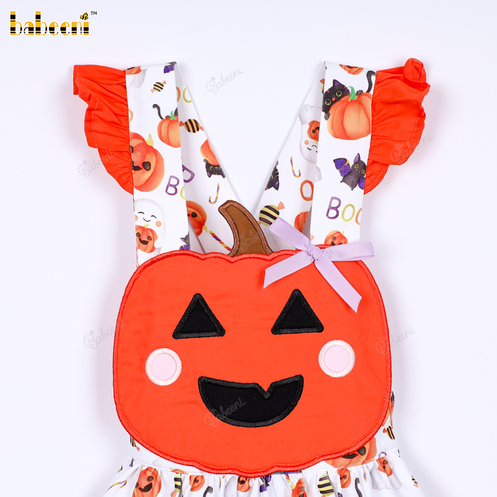 Features: Lovely Halloween overalls for little girls with applique of big pumpkin on the chest. Best gifts for birthday or Halloween days.