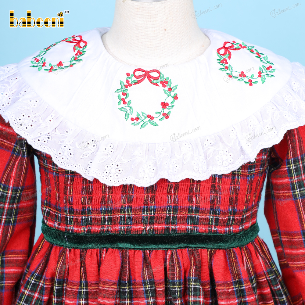 Hand Embroidery Dress Shirred In Red And Green For Girl - BB3228A