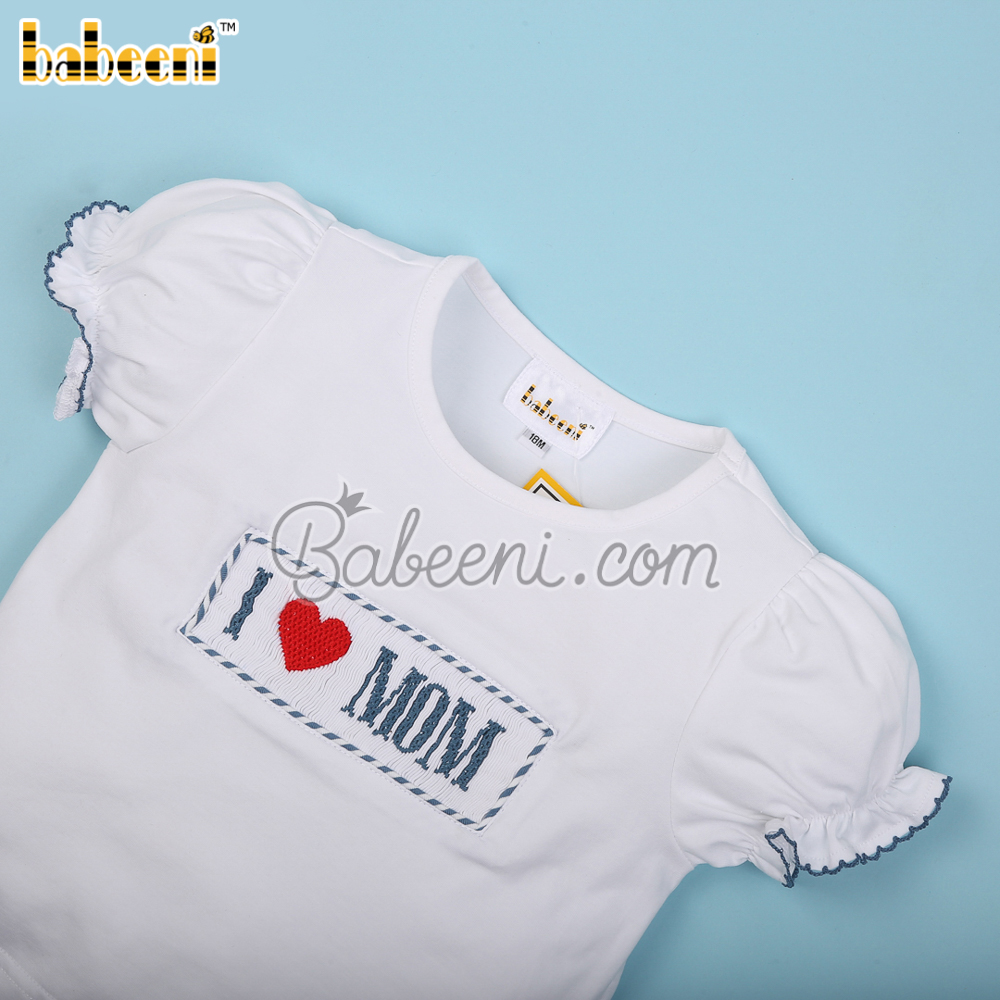 Features: Lovely set clothing for little girls with hand smocked I love Mom on the chest, ruffle on bottom, angel sleeves. Perfect for Spring summer. Best gifts for birthday or special days.