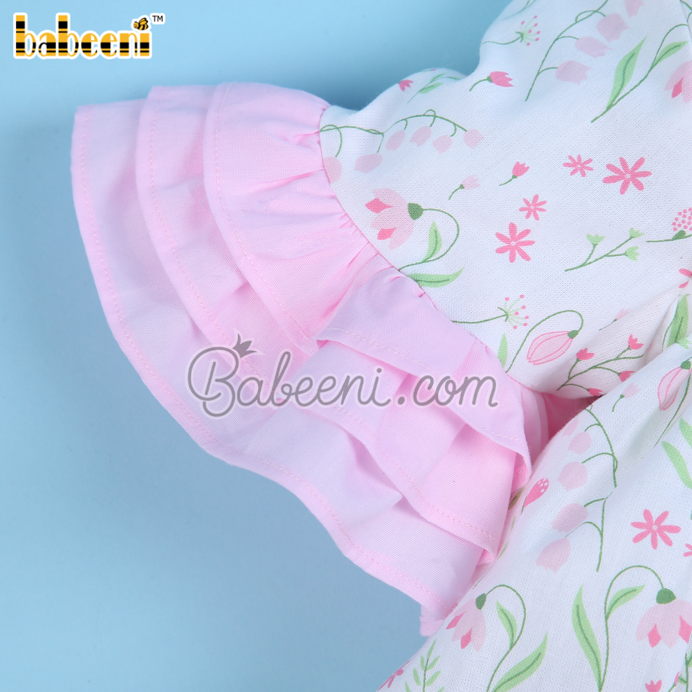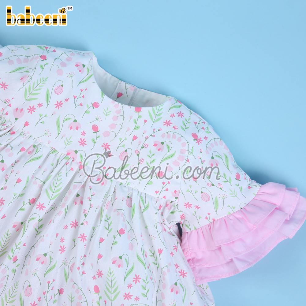 Features: Lovely two piece set for little girls with lily floral printed on fabric, ruffles on sleeves & bottom, short sleeves. Perfect for spring summer. Best gifts for birthday or special days.