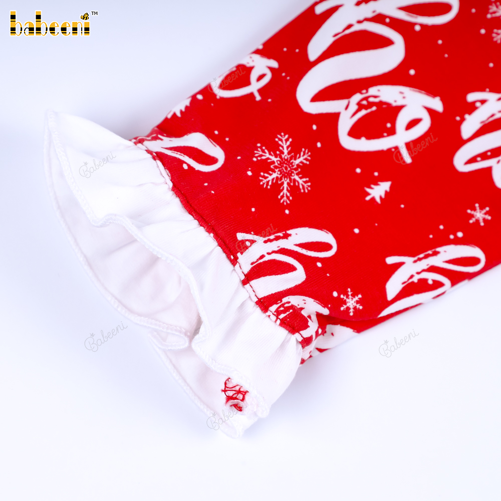 Features: A lovely baby romper with a Nordic Christmas print on the fabric, round neck, front zipper, and white ruffled cuffs. Perfect for Christmas or special occasions. The best gift for birthdays or special holidays.