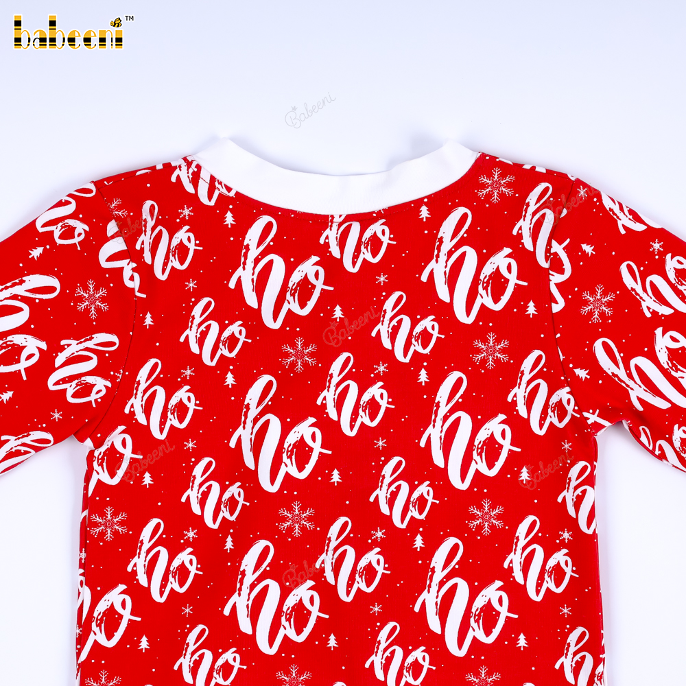 Long-sleeved romper with Nordic hohoho print for boys for Christmas.– BB3566