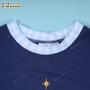 Material: Navy plain knit + Baby blue gingham knit fabric