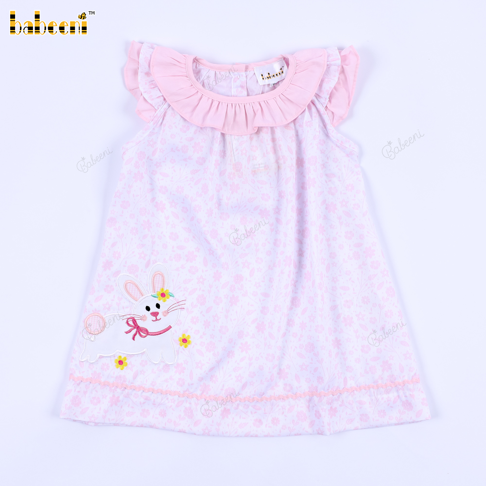 Machine Embroidery Bunny Dress In Pink For Girl - BB3246