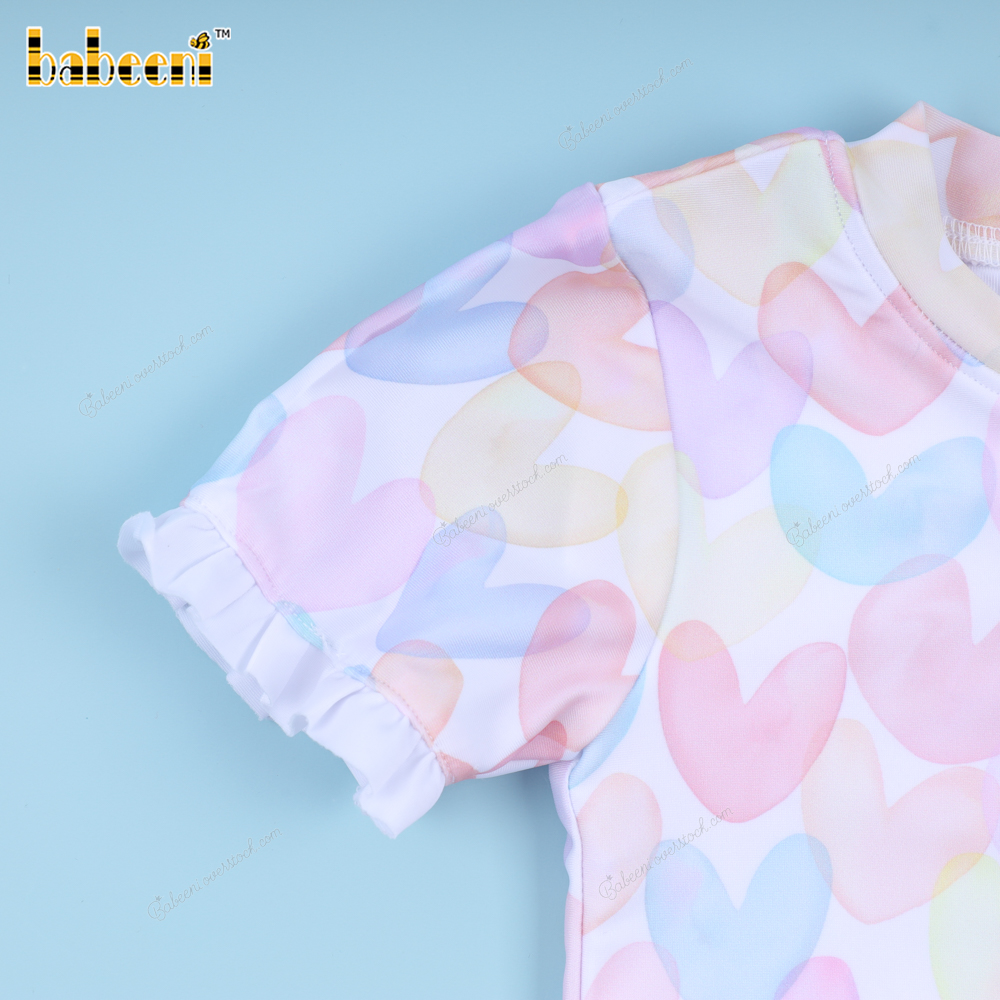 Features: Fancy swimwear for little girls with Multi Color Heart pattern. Perfect for Spring summer. Best gifts for birthdays or special days.