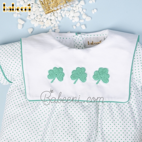 Features: Nice baby bubble for little boys with hand crochet of lucky leaves on the chest, green hem. Best gifts for birthday or special days.