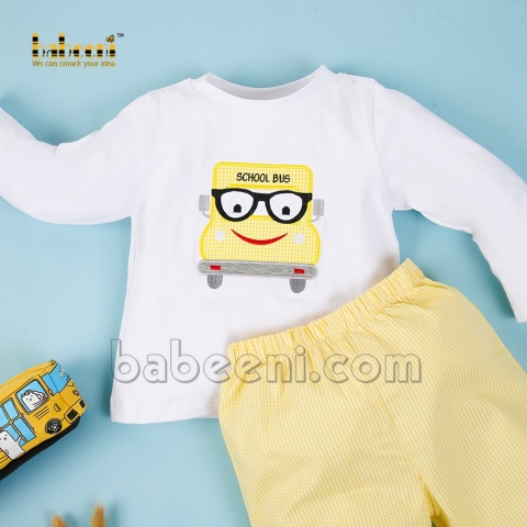 Feature: Nice T-shirt for boys with schoolbus applique on the chest, long sleeves