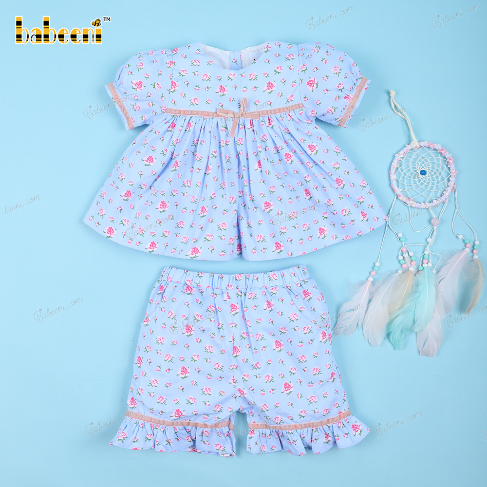 Plain 2 Piece In Blue Floral For Girl - BB3210A