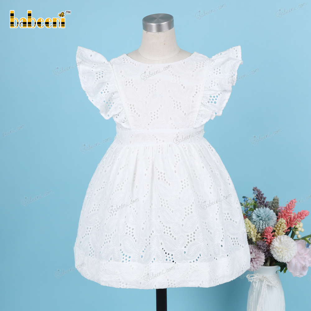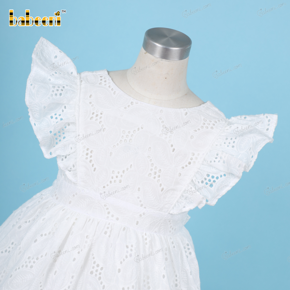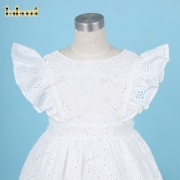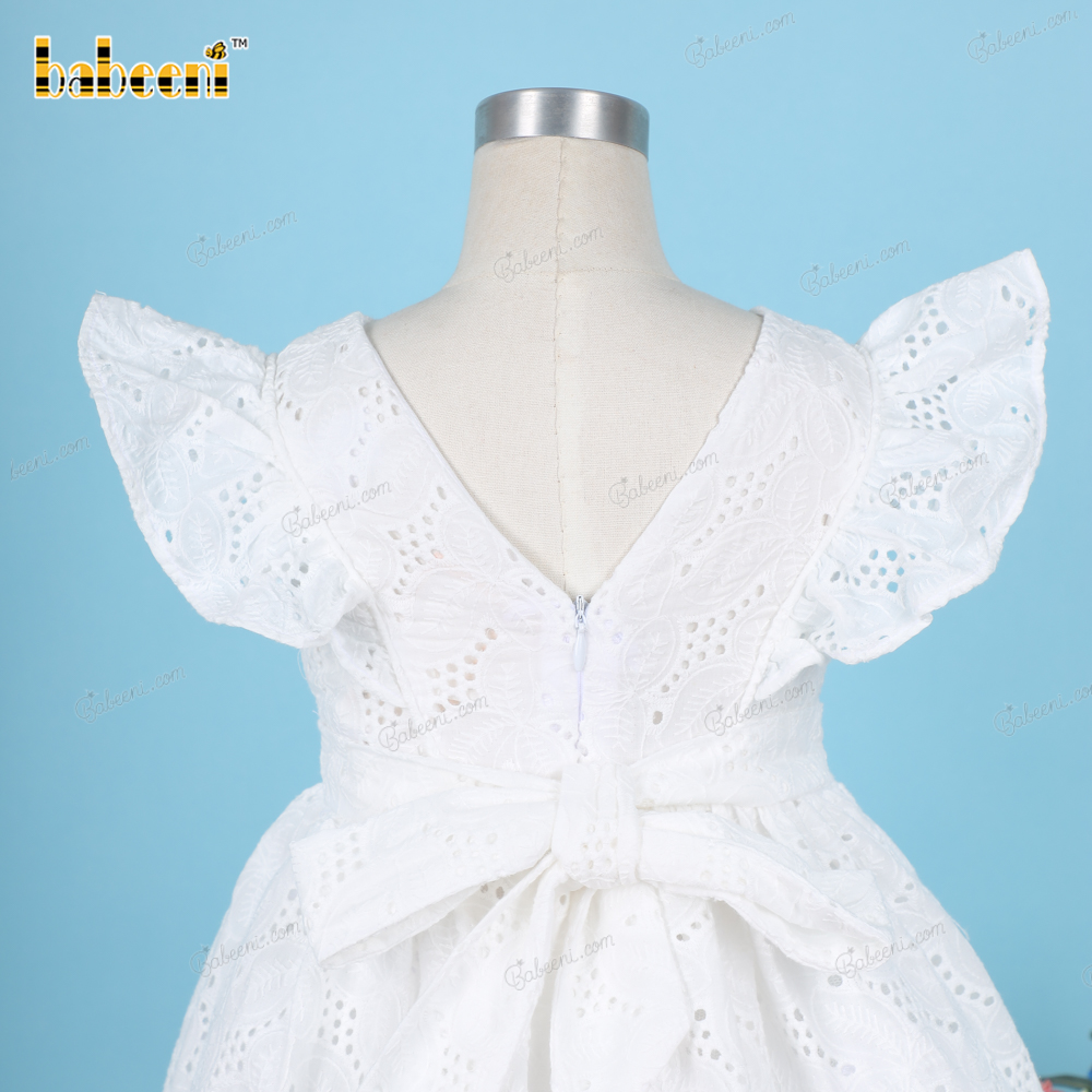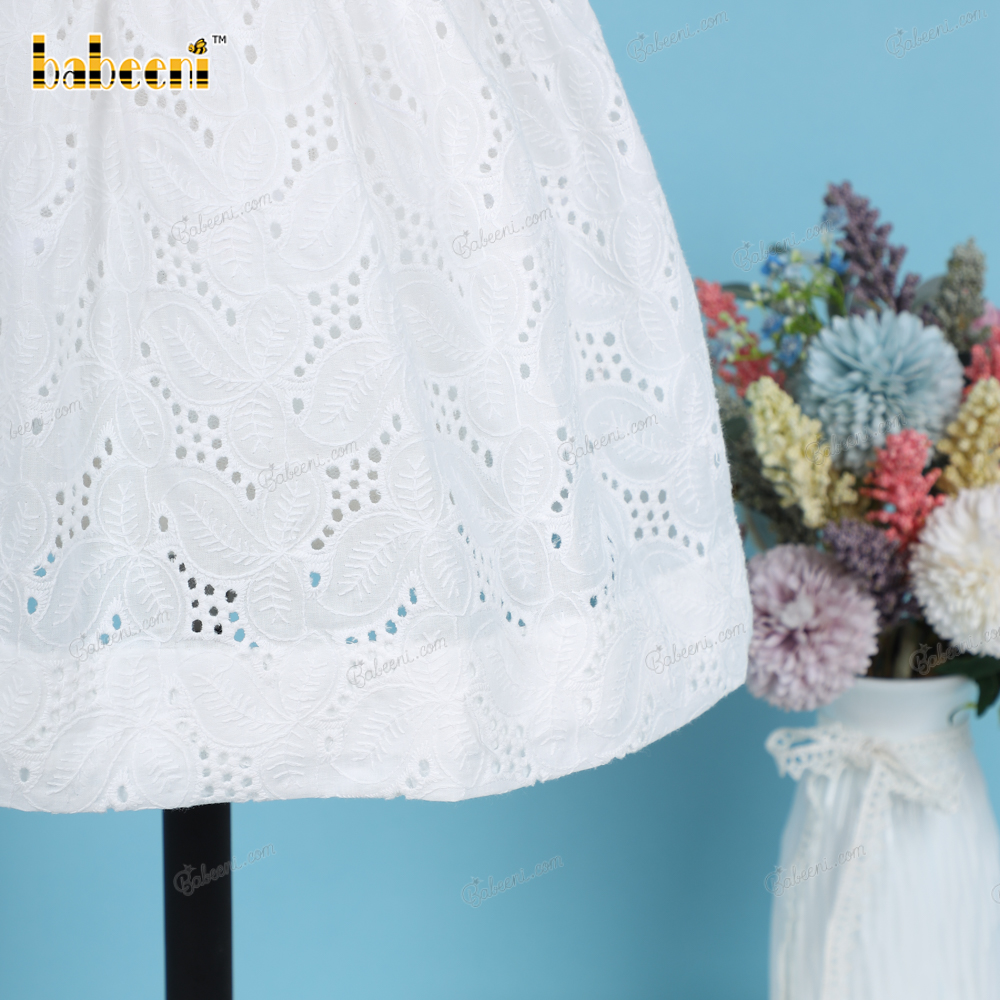 Plain White Belted Dress Embroidery fabric For Girl - BB3224A