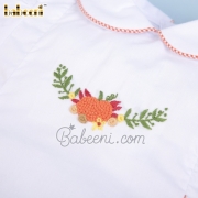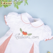 Features: Lovely baby dress for little girls with pumpkin French knot embroidery & hand embroidery of leaves on the chest, orange zigzag on sleeves. More outstanding with orange gingham fabric attached on dress. Perfect for Thanksgiving. Best gifts for birthday or special days.