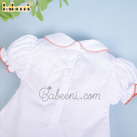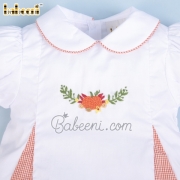 Features: Lovely baby dress for little girls with pumpkin French knot embroidery & hand embroidery of leaves on the chest, orange zigzag on sleeves. More outstanding with orange gingham fabric attached on dress. Perfect for Thanksgiving. Best gifts for birthday or special days.