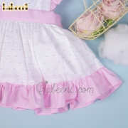 Fabric : White with pink swiss dot