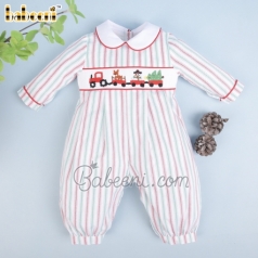Train carrying Christmas gift smocked boy bubble – BB2854A